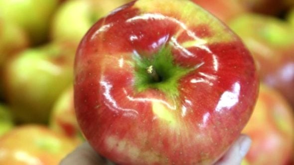 The honeycrisp needs to have the stem removed by had, That contributes to there high cost.